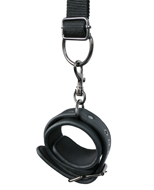Make your bondage game even more exciting with this bed restraint system. Because of the adjustable straps, the system fits on any mattress. Put the straps underneath your mattress and let the cuffs hang out at the sides. Then let your partner lie on the bed and tie his or her hands and ankles with the cuffs. Escape is impossible! All four cuffs are adjustable for a perfect fit. They are made of sturdy and durable faux leather and are lined with foam for a comfortable use.